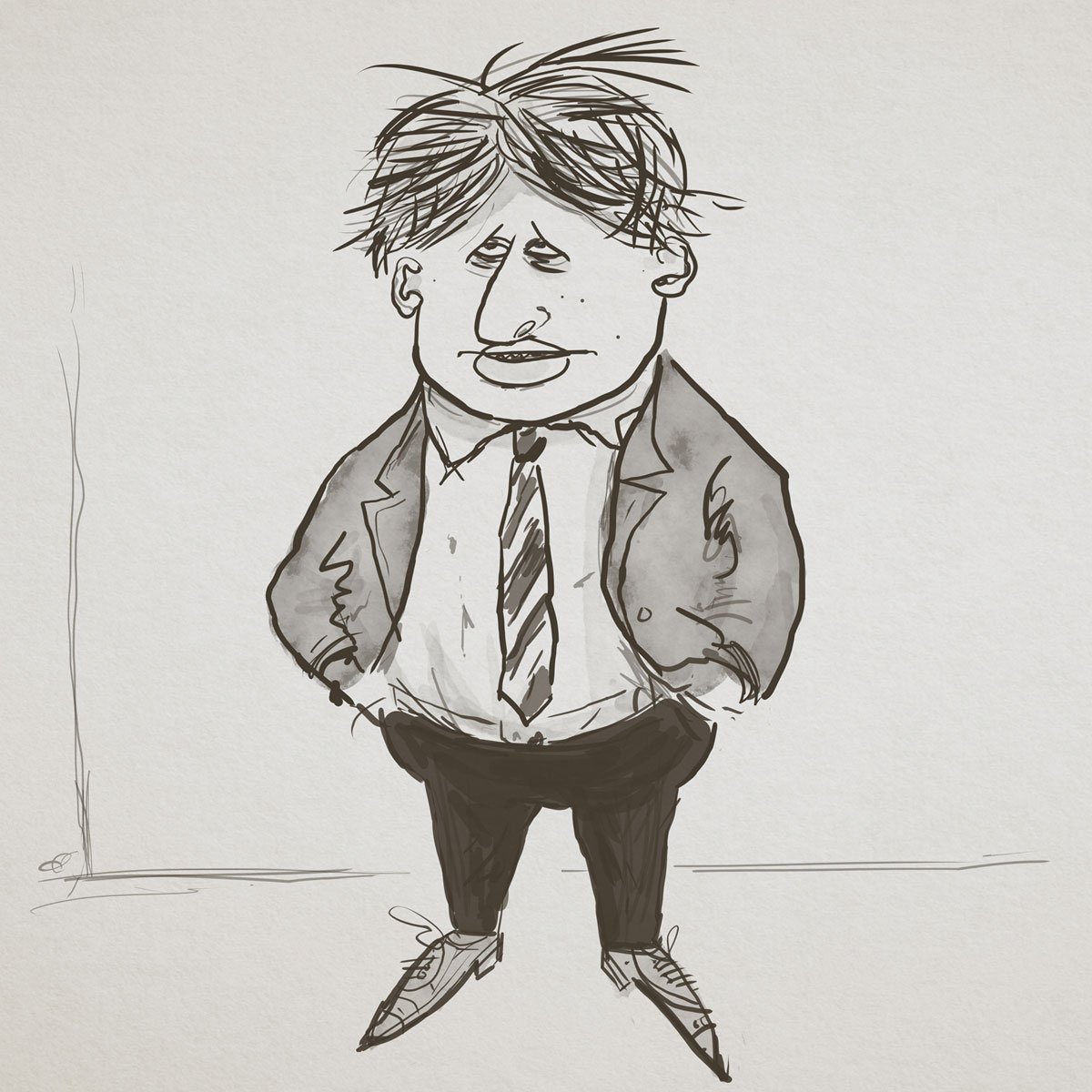 Boris, possibly thinking about his wizard wheeze…drawing, after Ronald Searle, by Richard Littler