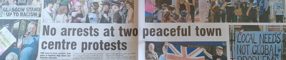 Below, a letter, written to the Dumfries Courier in response to an article, A Day of Protests. For whatever reason, the letter was not printed in the succeeding edition in which coverage of the protests was included. The themes of the letter have relevance to similar protest events around the country.