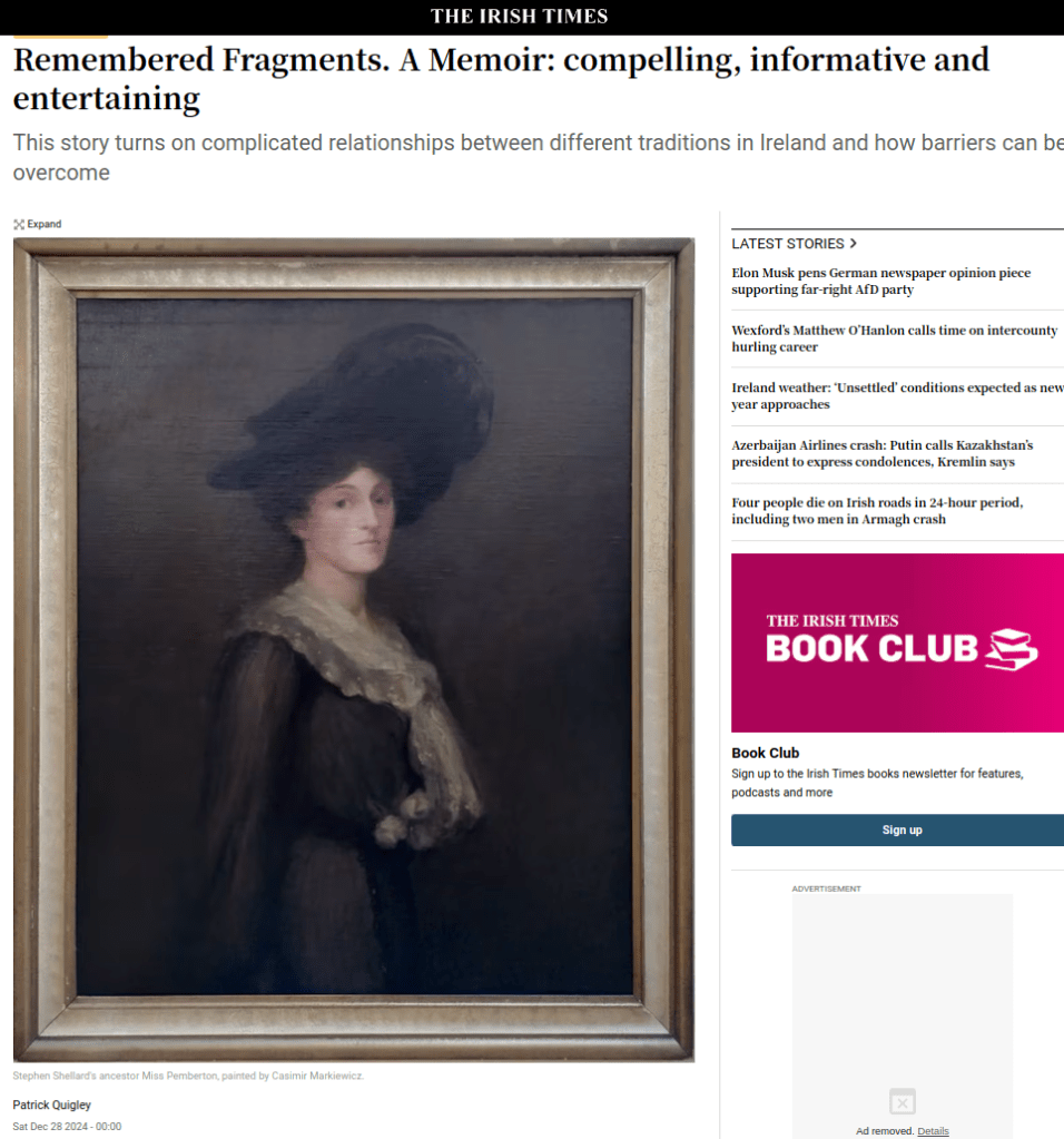 Irish Times – “compelling, informative and entertaining.” Pat Quigley, biographer of Constance, Casimir and Stanislav Markievicz